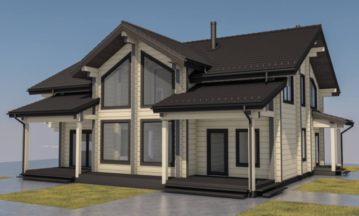 Новый проект двухэтажного загородного дома из клееного бруса