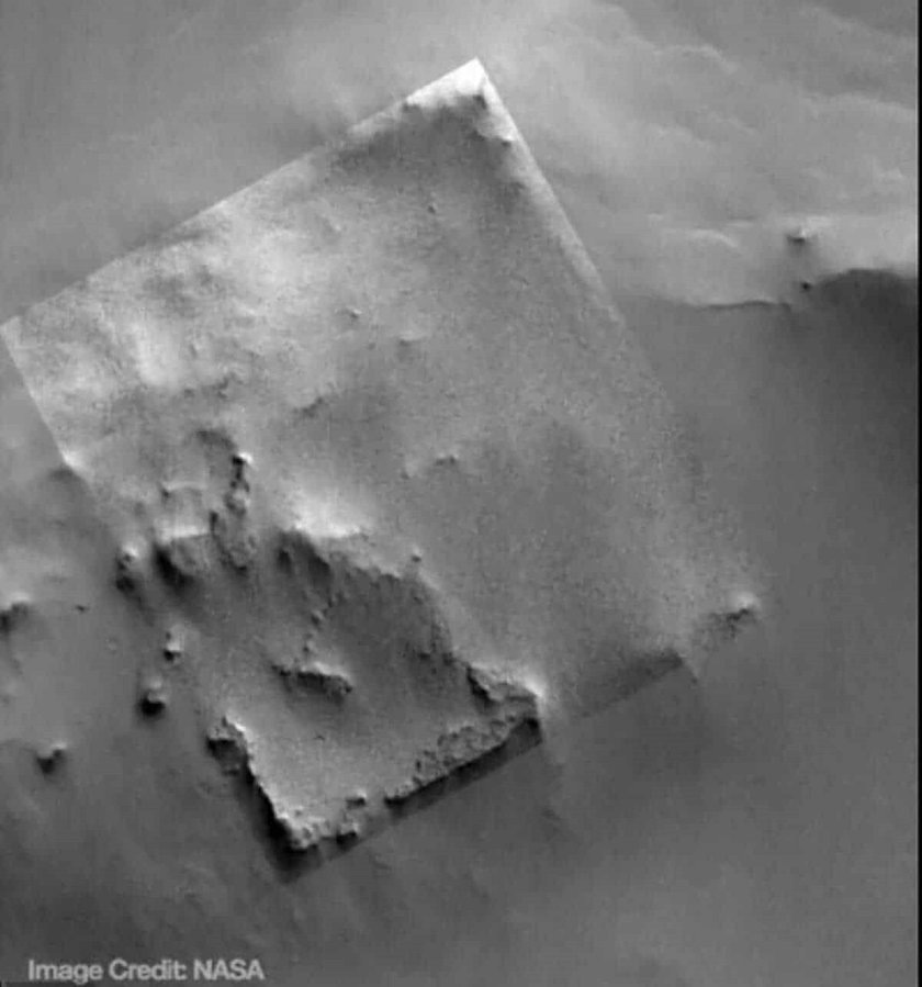 На поверхности Марса обнаружена необычная квадратная структура, которая вызвала бурные обсуждения среди ученых и любителей космоса. Фотография загадочного объекта была сделана камерой Mars Global Surveyor (MOC) с борта орбитального аппарата Mars Orbiter и опубликована на сайте Mars Image Explorer Университета штата Аризона. Снимок привлек внимание благодаря четким линиям, прямым углам и симметричной форме, что не характерно для природных процессов. Исследователи выдвинули несколько гипотез происхождения структуры: от ошибки визуализации до возможных следов древней марсианской цивилизации. Некоторые ученые предполагают, что квадратная формация могла возникнуть в результате естественных геологических процессов, таких как разломы или эрозия. В качестве примера они приводят аналогичные образования на Земле, например, прямоугольные впадины с соленой водой в Тасмании, которые образовались из-за эрозии осадочных пород или «Мостовая гигантов» в Северной Ирландии. Однако сторонники конспирологи
