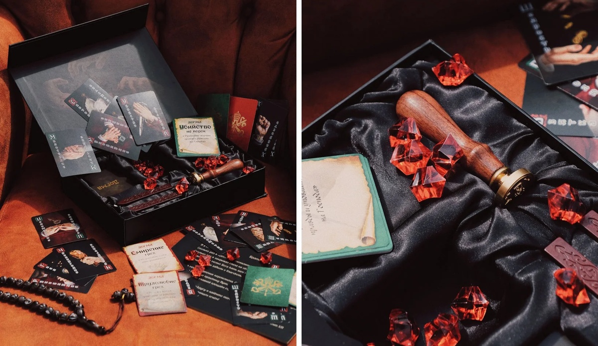 Выходные неожиданно прошли замечательно. Наша любимая компания, прекрасная атмосфера и конечно, игры. Сыграли в этот раз не так много как хотелось, но , самый главный итог - одна из игр успешно РЕАБИЛИТИРОВАНА!!! Но обо всем по порядку) Начали мы с очень странной игры, вообще не хотела про нее писать, но пусть останется в памяти) я почти уверена что большинству здесь она НЕ понравится из-за тематики.... ДОГМА Основана игра на механике Верю-Не верю, оформление конечно очень атмосферное у игры, богатое и со вкусом). Игра сильно взрослая.... Представьте себе мир, где обезумевшие от пороков кардиналы обманывают друг друга и переписывают священные догмы в угоду своим низменным страстям. Чудовищно, не правда ли? Так вот... В игре вы и есть те самые кардиналы.... (я вас предупреждала)... которые не желают отправляться на костёр. А в ваших руках — карты грехов и добродетелей. Цель игры: избавиться от карт раньше всех. Но исповедоваться вы можете ТОЛЬКО в собственных добродетелях. Расписыв