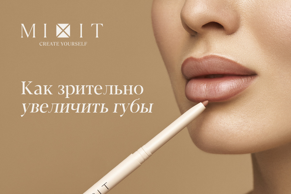 Возьмите нюдовый карандаш, например, этот от MIXIT Make Up: в оттенке 02 или 03. Пройдитесь им по уголкам губ и арке Купидона для создания тени. Теперь можно нанести помаду или блеск. На контрасте центр губ будет выглядеть немного светлее и объемнее.