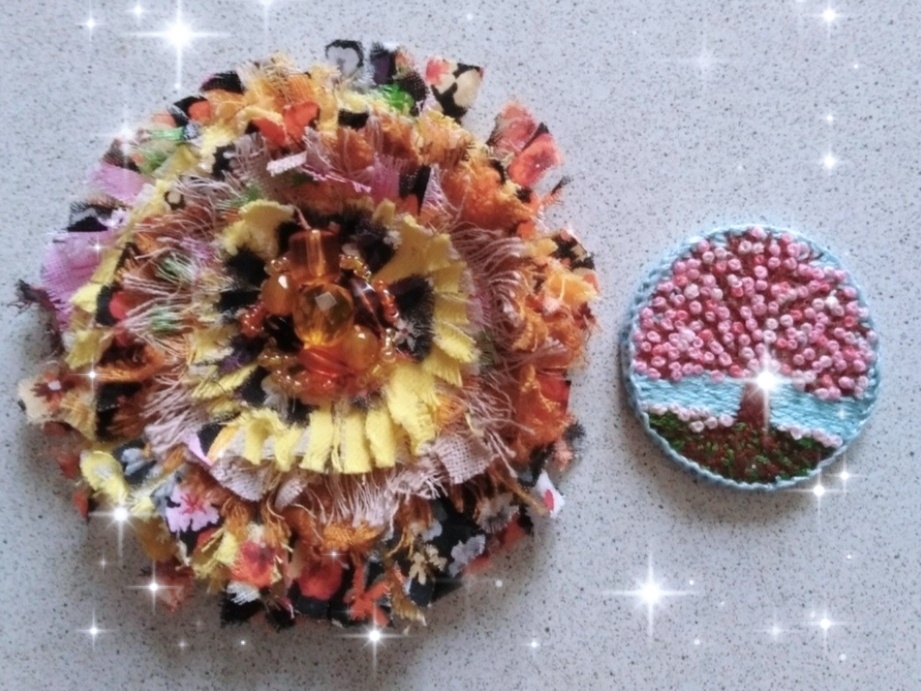 Выставка изделий и вдохновляющих фотографий, которыми подписчики «Кармашка» хвалились на этой неделе невелика, но очень содержательна. Особая благодарность тем, кто делится процессами, размышлениями, советами. Как попасть в экспозицию напишу в финале, долистайте. Совместить прогулку с фотосессией – отличная идея! Во-первых, дневной свет лучше любого искусственного освещения. Во-вторых, это очень полезная нагрузка, разминка после швейного сидения. В-третьих, главное – тут котик! Февраль растопил все накопленные в средней полосе России снега и накрыл нас тëплой мартовской волной. Чем ещё объяснить появление таких очаровательных брошек? Ирина В. разделила свой комментарий на 2, отдельно текст, отдельно фото. Удобнее, конечно, одной кучкой. Но я справилась, привожу цитату первой части: «А меня на брошки потянуло, конечно глядя на ваши творения, за вечер смастерила из мелких лоскутков и самое интересное не собиралась шить сейчас вышиваю, достала закрома и руки сами выбрали матери