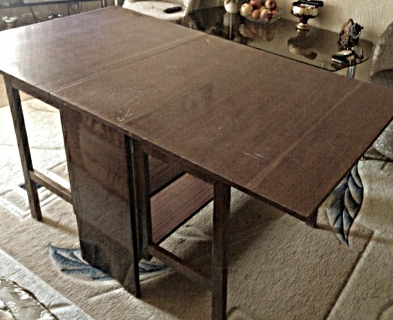 А после уже открывали одну половинку. Александр и Татьяна часто накрывали стол для самих себя. Им хватало и столько места. Ножки уже скрипели, шатались, но открывались. На полированной поверхности - царапины и потертости.