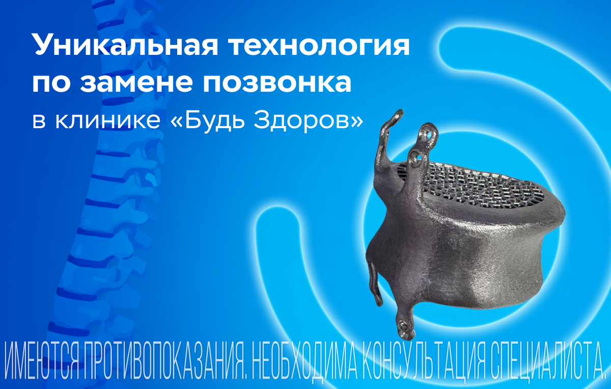 Специалисты флагманского центра «Будь Здоров» на Рязанском проспекте первыми в России проведут уникальную операцию по замене позвонка, разработав для этого специальную технологию! 📍 К нам обратился пациент из Кирова, страдающий от сильных болей в пояснице. Причиной стала неудачная фиксация позвонка после предыдущей операции. Команда нейрохирургов-вертебрологов приняла решение провести высокотехнологичное вмешательство с индивидуальным протезированием позвонка.