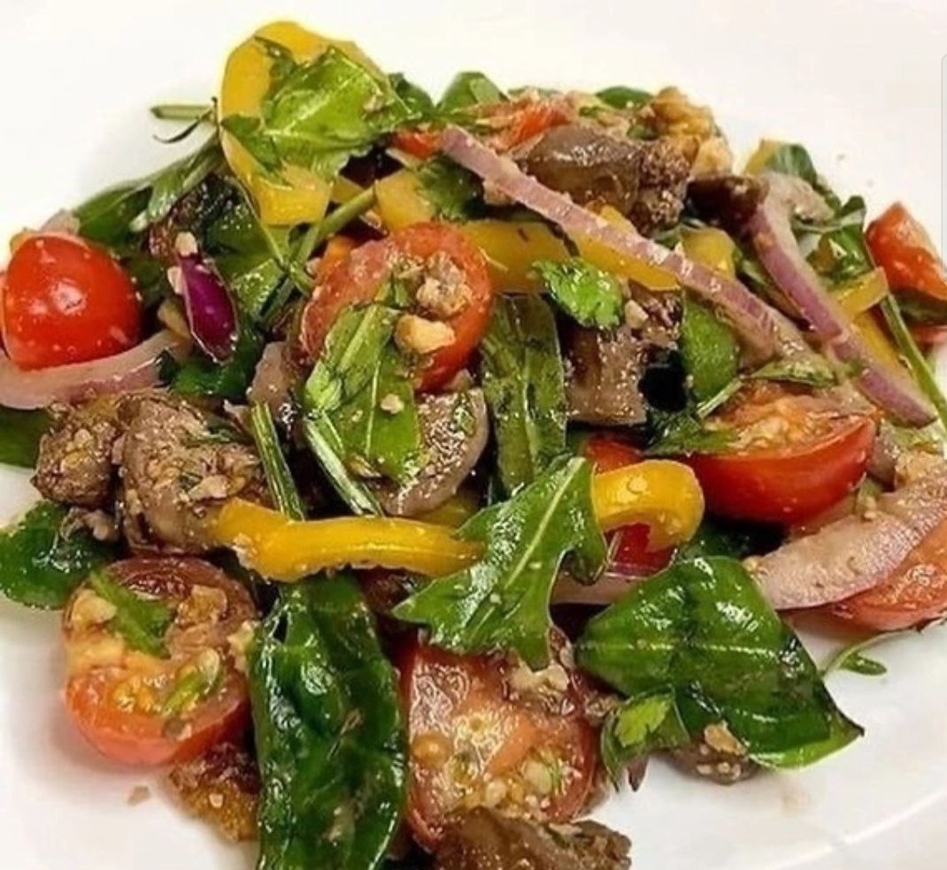 Тёплый салат с печенью 😋