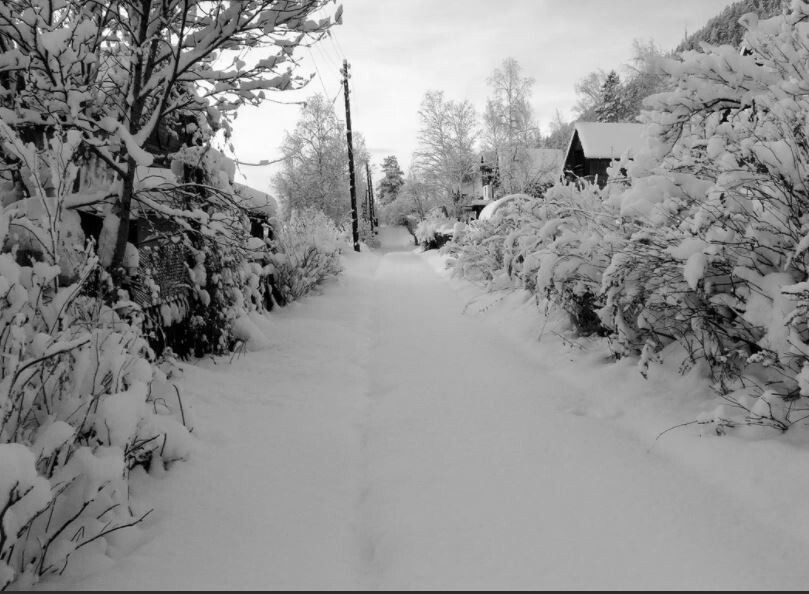 Снег повсюду, к калиткам не пройти! На крышах домов, на деревьях, стоящих, как яблони в цвету. Белые - белые! Овраг, покрытый ровным слоем ослепительно белого снега, искрящегося на солнце. И ни одной тропинки, ни одного случайного следа не было видно, только вчерашние следы от машины Юрия. И тишина…Даже слышно, как какая-то птица села на ветку дерева, и стряхнула с нее снег…Какое-то время Царевы стояли молча, любуясь этой красотой.