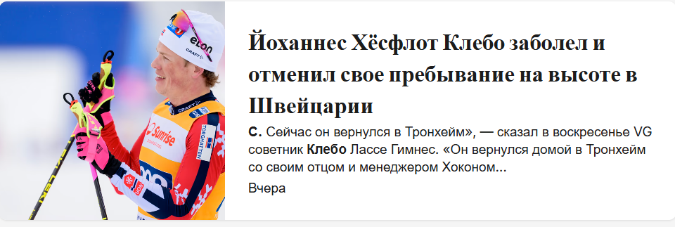 Интересный факт: когда шведы и норвежцы едут на тренировки в Европу, среди европейских спортсменов все больше в тренде приезжать на тренировки в Норвегию. Например, Лукас Шанават из Франции в декабре тринировался в Норвегии с тем же Клебо. Россияне тоже раньше любили после или до соревнований тренироваться в Норвегии и Европе.
