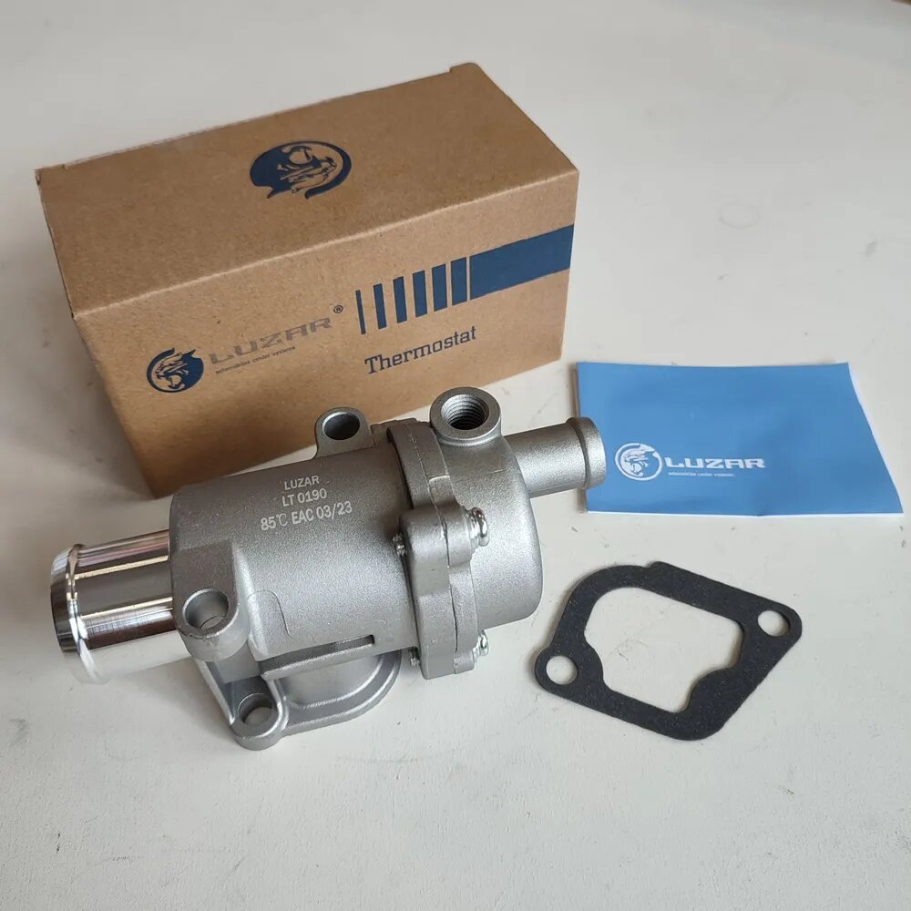 Предыстория. После покупки авто сразу заметила, что плохо греет печка в салоне. Климта-контроль выставлен на 30 гр, а в машине прохладно. Первый мысли, что надо менять радиатор отопителя. Прикинув масштаб работ сразу как-то стало грустно. Вырезать его не хотел, поэтому пришлось бы снимать переднюю панель, а делать этого не очень хотелось. Понаблюдав за тем как работает двигатель, заметил что температура не поднимается выше 60 гр. Датчик температуры работает корректно. Вздохнув с облегчением понял, что проблема в термостате. Термостат был приобретен фирмы Luzar в комплекте с прокладкой, температура срабатывания 85 гр. Так же в максидоме приобрел 2 канистры по 5 л антифриз Sintec Antifreeze Luxe G12+ и герметик-прокладка RUNWAY.