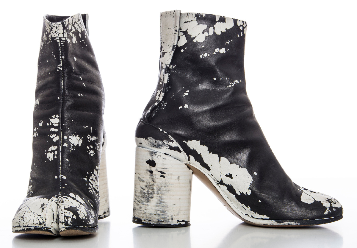 В 1988 новая модель обуви с раздвоенным носком стала одной из жемчужин его первой весенне-летней коллекции. перед показом обувь окунули в краску, чтобы на подиуме из белой ткани оставались необычные следы с раздвоенным носком. С тех пор таби регулярно присутствуют в коллекциях Maison Margiela.