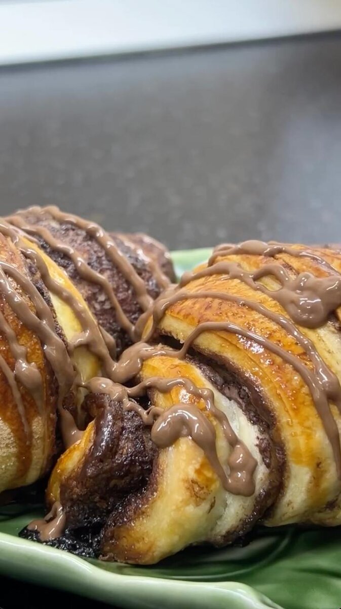 1. Раскатай тесто, намажь шоколадом и сверни круассаны.