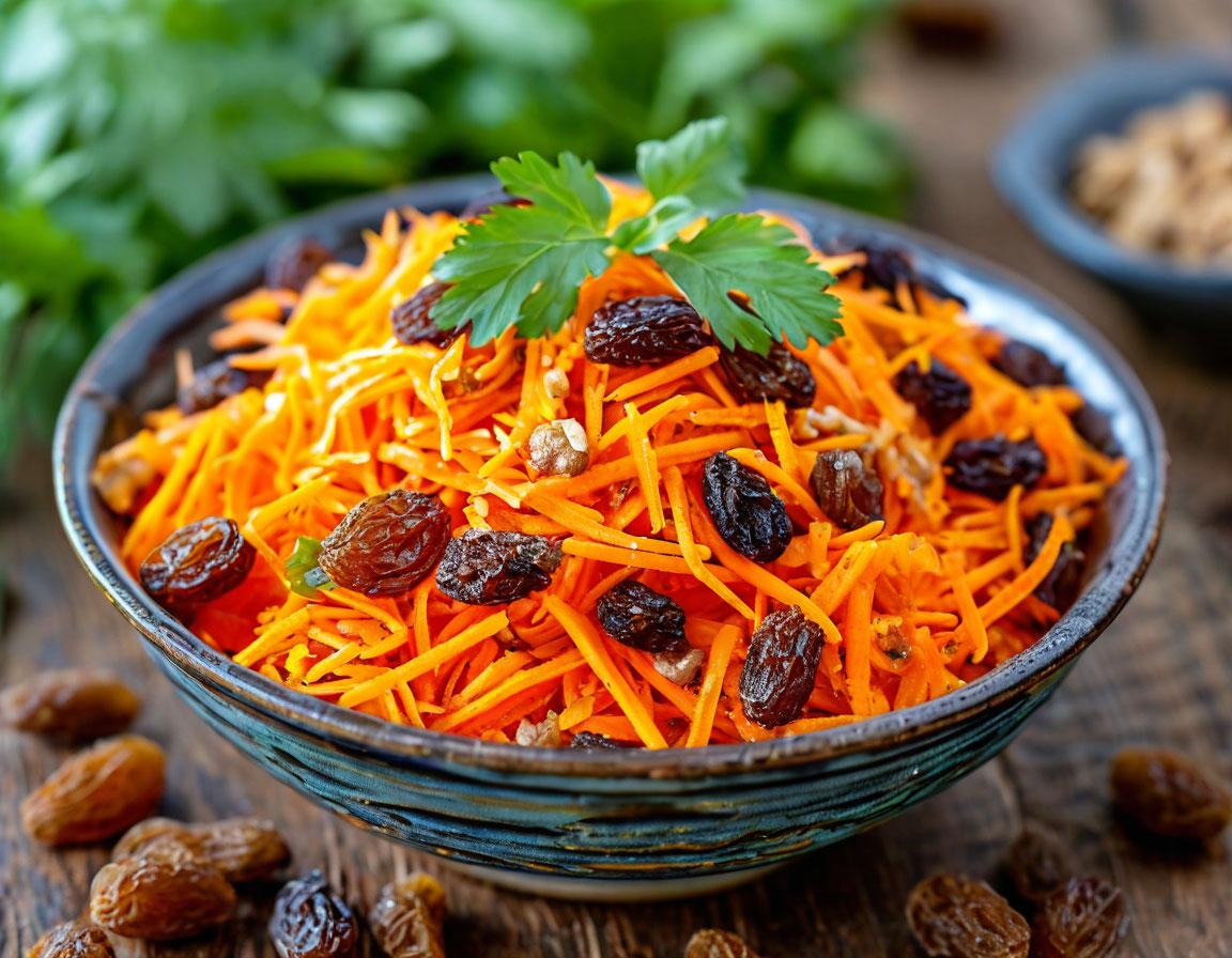 Морковный салат с изюмом и орехами