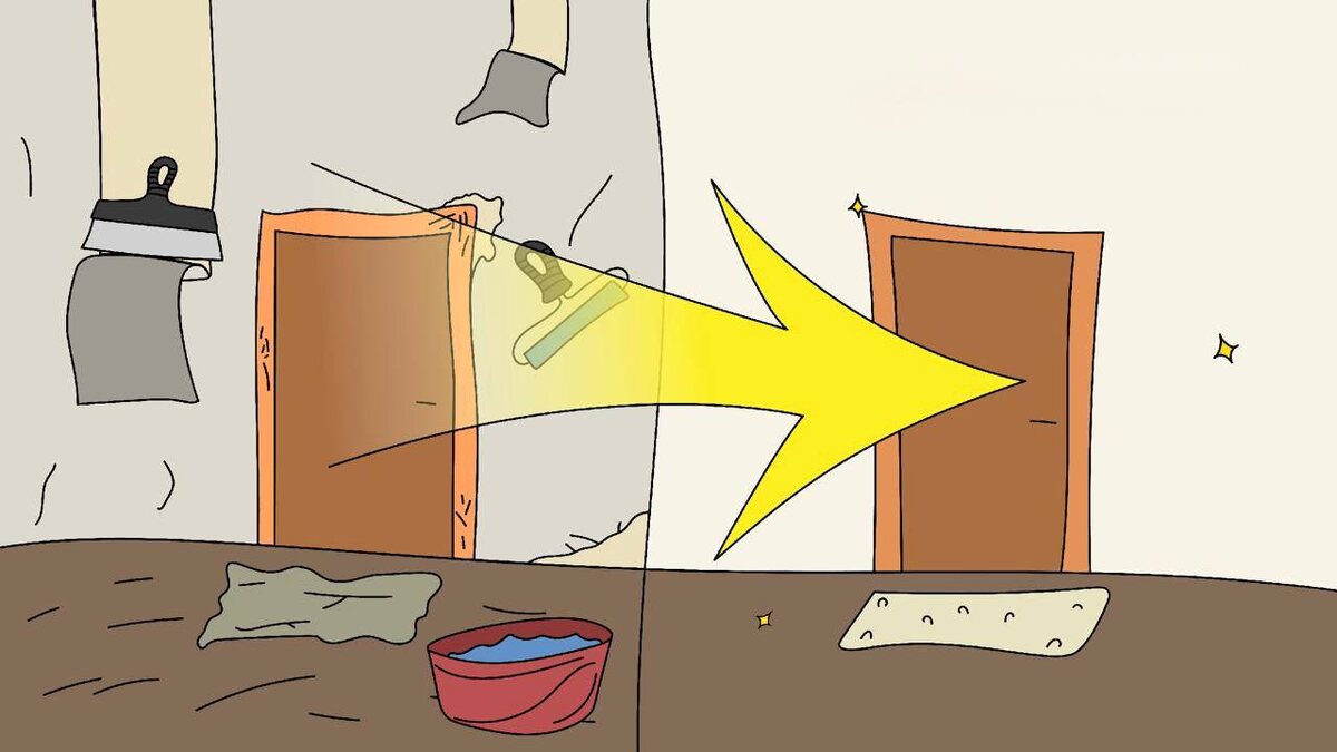 Облегчаем муторный процесс, превращая его в медитацию. Чтобы не удалять старые бумажные обои кусочками в два-три сантиметра, делаем следующее: 1. В таз или ведро с теплой водой можно добавить немного стирального порошка (или уксуса, благо и то, и другое у вас найдётся). 2. Тряпку или валик окунаем в полученный раствор, смачиваем обои и оставляем их в таком виде минут на 20. 3. Когда бумага пропитается удаляем по возможности наиболее крупными кусками. 4. Мелкие куски обрабатываем тем же раствором и снимаем Наука тоже не стоит на месте и предлагает средство для снятия обоев, его следует добавить в таз с водой и тогда снимать обои можно будет уже через две-три минуты. Важно! Такие средства достаточно едкие, и работая с ними, стоит обзавестись респиратором, а работать желательно при открытых окнах. Если же предыдущие хозяева клеили обои на клей ПВА, то тут вам поможет только старый верный шпатель. Или дрель со специальной щетко-насадкой. Тут нам понадобится валик с небольшими иглами. Алгор