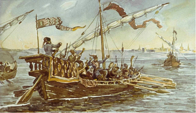 - Атаман! Тимофеич! – раздалось вдруг с кормы. Степан очнулся от размышлений, кинул взор на корму. Там стоял дозорный казак и, указывая рукой на юг, вниз по течению, сказал: “За нами гонится ладья воеводская. Штой-то надобно князю Ивану!” Гребцы, слушавшие разговор своего атамана с дозорным, и уставшие от энергичных однообразных движений, подопустили весла, полагая, что будет остановка, но Разин думал иначе.