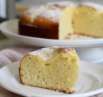 Подсластите свой день кусочком этого итальянского мягкого и влажного, нежного и вкусного торта с заварным кремом. Торт готовится просто. Обязательно попробуйте его приготовить к семейному чаепитию. Вот рецепт торта с кремом. Продукты необходимые для его приготовления: Для заварного крема: два яичных желтка 50 г сахарного песка 3 столовые ложки муки пшеничной 235 мл теплого молока половина чайной ложки ванильного экстракта. Для теста для торта: четыре больших яйца 200 г сахара 115 г растительного масла или растопленного сливочного масла половина стакана молока один лимон с мелко натертой цедрой 300 г муки пшеничной щепотка соли 2 чайные ложки разрыхлителя сверху посыпать сахарной пудрой. Время приготовления: 1 час. Продукты по списку собраны. Начинаем готовить вкусный домашний торт с заварным кремом. 1. Для приготовления заварного крема. Разогрейте молоко до горячего состояния (не доводя до кипения). 2. Взбейте яичные желтки с сахаром и мукой в кастрюле среднего размера до получения лёг