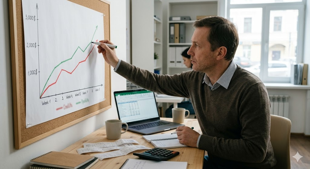 Как же именно отмечать расходы и доходы? Понедельно. Возьмите расходы на маркетинг за прошедшую неделю. И доходы от реализации маркетинговой программы за ту же неделю. Отметьте их на графике. Доходы должны превышать расходы.