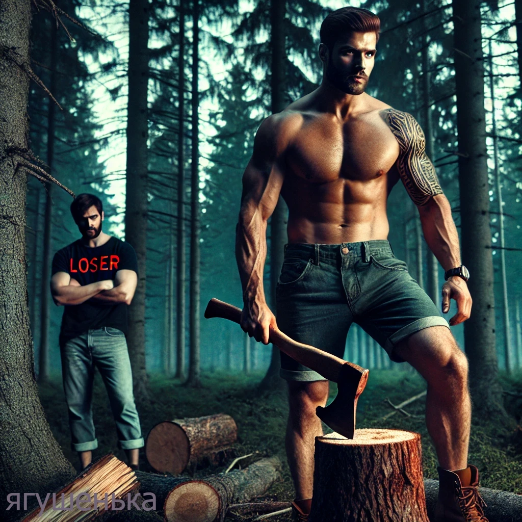 Перед глазами возникла картина, как голый по пояс Василий ловко берёт топор. И начинает колоть дрова. Каждое движение выверено до миллиметра, каждый взмах достигал цели. Мускулы ходили ходуном, мощное тело блестело от пота....Вася выглядел так, что и Челентано бы обзавидовался. А как красиво его облегали шорты!