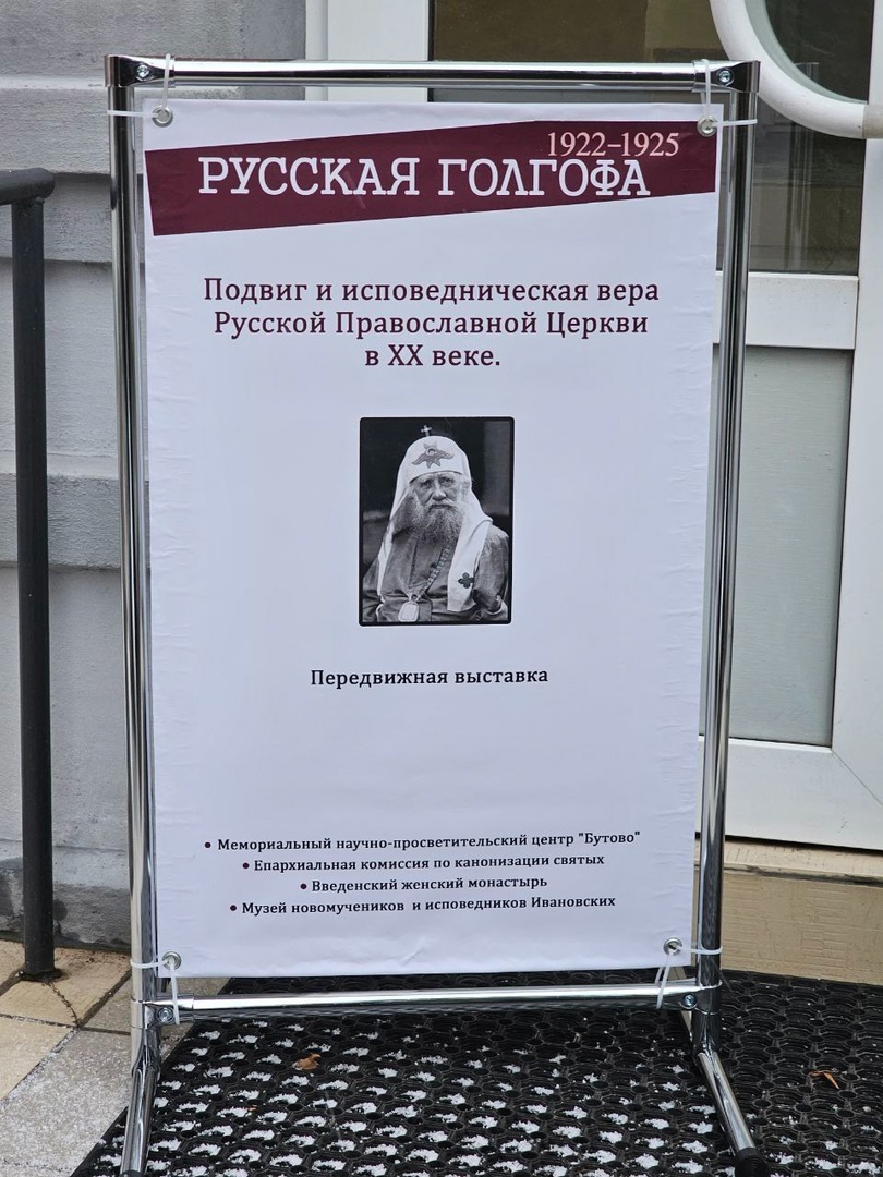 3 февраля, в музее Новомучеников и исповедников Ивановских Введенского женского монастыря города Иваново митрополит Иваново-Вознесенский и Вичугский Иосиф открыл передвижную выставку «Русская Голгофа: 1922-1925». Выставка подготовлена на основе материалов Мемориального научно-просветительского центра «Бутово». Она посвящена подвигу и исповеднической вере Русской Православной Церкви в XX веке. В плакатах выставки представлена информация о гонениях на Русскую Православную Церковь в 1922-1925 гг., о процессах по изъятию церковных святынь, о противостоянии Церкви с обновленчеством. Выставка приурочена к памяти святителя Тихона, Патриарха Московского. На 2025 год приходятся сразу две даты, связанные с его жизнью. 31 января Церковь отметила 160-летие со дня рождения (19/31 января 1865 г.) Патриарха Тихона. А на праздник Благовещения Пресвятой Богородицы исполнится 100 лет со дня его блаженной кончины (7 апреля 1925 года). Святитель Тихон вместе с Царственными страстотерпцами стоит во главе с