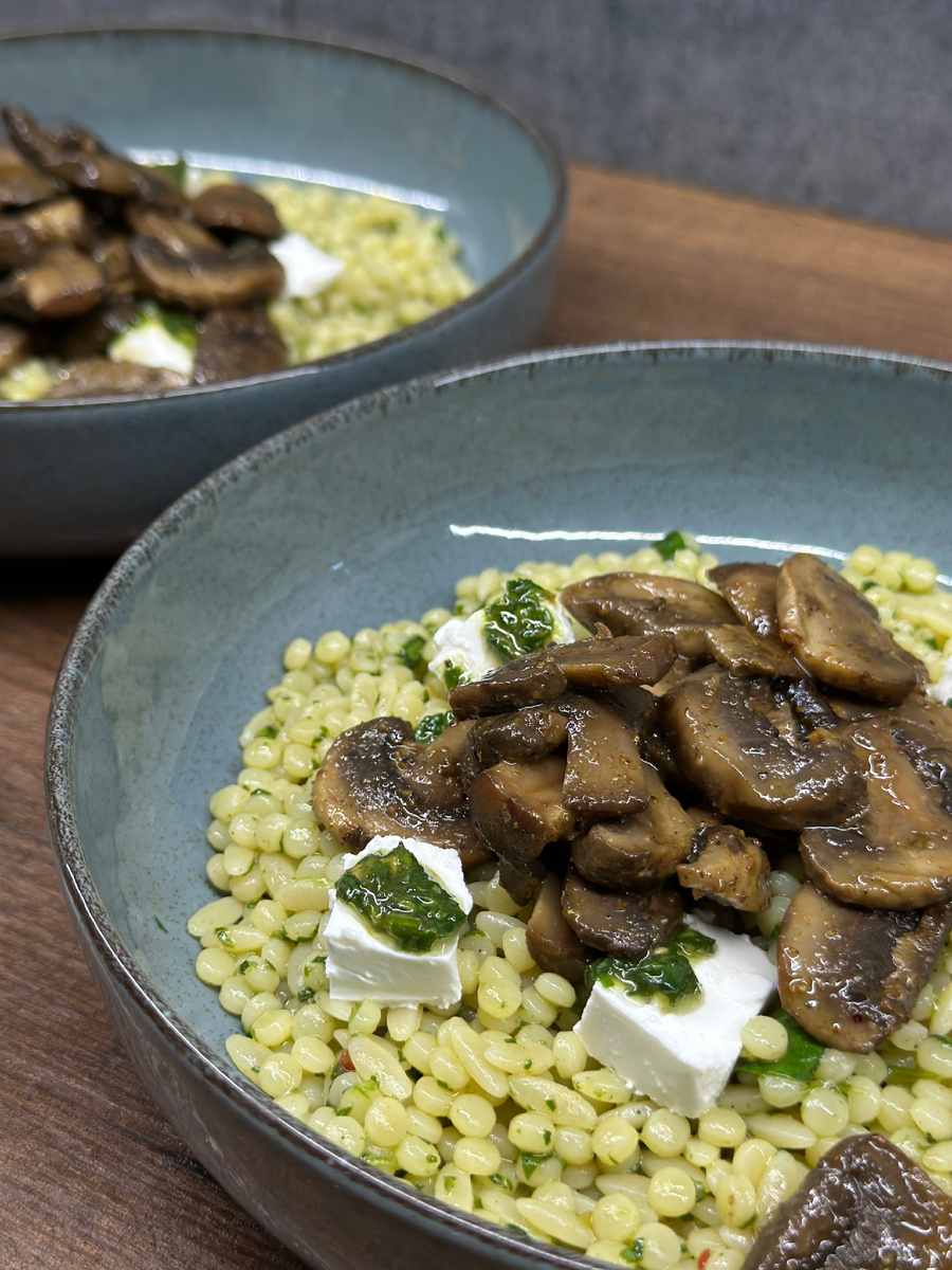Доброго утра, друзья! Я к Вам с рецептом обеда/ужина, как обычно - ничего сложного! Что нам для этого нужно: - птитим (либо паста орзо) - грибы (шампиньоны) - чеснок (зубчик) - сыр Фета - зелень (много зелени: шпинат, руккола, петрушка - любая) - перчик чили - специи/соль/перец (по вкусу) - масло оливковое Что мы с этим делаем: отвариваем нашу пасту до готовности. Грибы режем слайсами, обжариваем в масле со специями и чесноком. Делаем соус песто домашний: зелень, соль/перец/специи, перчик чили и масло - смешиваем в чаше блендера. Далее немного соуса добавляем в готовую пасту птитим и перемешиваем. Выкладываем на тарелку - сверху кладем кусочки Феты и грибы. Паста готова! 🤍 Приятного аппетита! #васинаеда #васинакухня