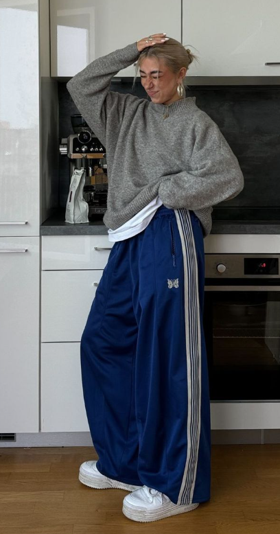 Джоггеры + кроп-топ + массивные украшения — комфорт и шик в одном комплекте.