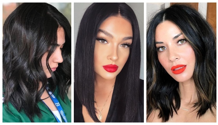В наши дни существует множество модных тенденций, связанных с окрашиванием волос. Однако классика не выходит из моды и остаётся актуальной во все времена. Речь идёт о естественном цвете локонов, который можно подчеркнуть при помощи грамотного тонирования. Оно придаёт природному оттенку выразительность и глубину. Сегодня мы хотим поделиться с вами двадцатью потрясающими примерами чёрных волос. Если вы брюнетка — эта подборка для вас! Пленительный и насыщенный чёрный цвет изумительно гармонирует со светлой кожей. Красные губы в таком образе — это вечная классика. Прямые черные волосы ниже плеч хорошо выглядят как с челкой, так и без нее. Иногда такая простая прическа выглядит более стильно, чем трендовые стрижки. Гладкость и блеск натуральным черным волосам может придать процедуры экранирования или ламинирования в салонах красоты. В таких случаях волосам даже не требуется дополнительно тонирование. Длинный боб на гладких волосах: что может быть лучше? Эта стрижка универсальна, а черный у