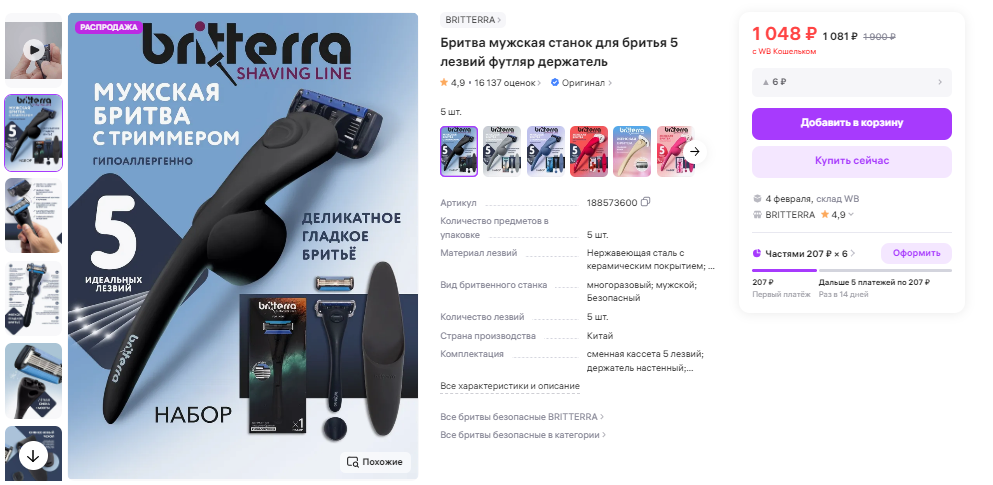 Бритвенный набор Britterra: безупречное бритье и идеальный подарок! 🎁 5 лезвий, смазывающая полоска с маслами ши и жожоба, удобная анатомическая ручка и сменные кассеты. Подходит для лица и тела, обеспечивает гладкую кожу без раздражения. Стильный дизайн и компактность – идеально для путешествий!