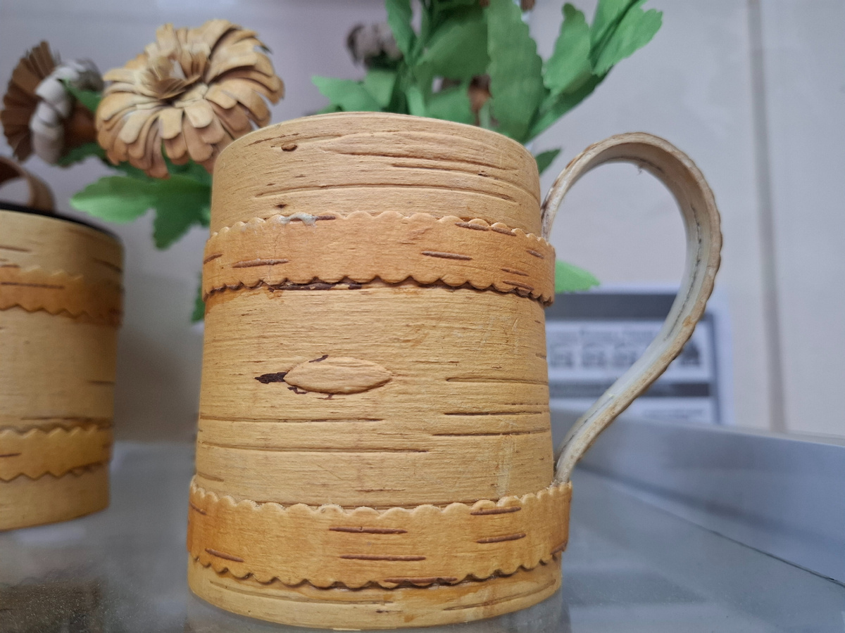 Приветствую читающих. Не могла пропустить понедельник с темой бересты. Хотя своего мне совсем показать нечего. Руководитель кружка в отпуске и мы как настоящие ученики отдыхаем и прогуливаем, хотя обещали заходить. Представлю галерею поделок и немного расскажу. Тема -емкости , туески, солонки и вазы. Ваза, самое простое. Сама структура бересты служит украшением. Как будь то рисунок нанесен, а что нарисовано надо догадаться самостоятельно. Как про горы-вот это похоже на дельфина, это на медведя надо просто придумать кто здесь, по мне так морской котик. А что очень даже похоже , лежит себе на боку , складки жирненькие на теле и мордочка с усами. Это туесок. Несколько технологий оформления. Прорезная, фигурные ножницы ,штампы и самое сложное оплетка края. Плетется одной лентой берестяной. Не двумя, а одной, хотя при первом рассмотрении кажется что переплетается не одна лента. Не специально косяк показываю, просто заметила, самое сложное закончить оплетку сохранив рисунок. Видн