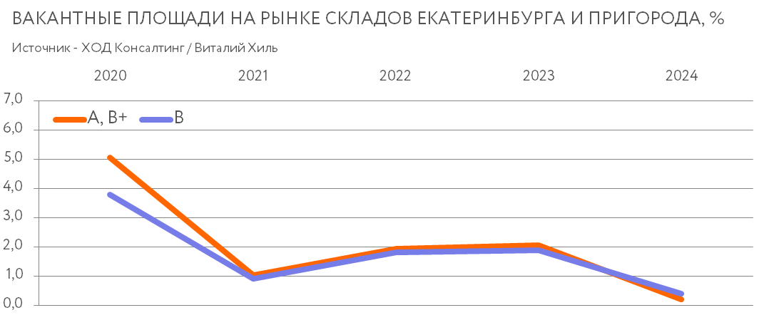 В отличие от жилого сектора рынок складов начинает 2025 год в условиях тотального дефицита свободных площадей. Ждать быстрых перемен не стоит - высокие ставки по кредитам ограничили инвестиции в новые проекты. Рост складского фонда не успевает за спросом Рынок складов живет в условиях недостатка свободных помещений уже много лет, несмотря на то, что в предыдущие годы вводился рекордный объем площадей. Так в 2023 году на рынок было выведено около 480 тысяч кв. м новых площадей, показатель 2024 – 430 тысяч кв. м. Общий фонд актуальных складских помещений превысил отметку в 4 млн. кв. м. При этом уровень вакантных площадей на рынке остается мизерным – 0,2% в классе А и около 0,4% в классе В. Это минимальный показатель за последнее десятилетие. Девелоперы долгие годы бегут за растущим спросом и не могут догнать его. В предыдущие несколько лет драйвером развития сектора был спрос со стороны традиционной и интернет-торговли, в настоящий момент заметную роль на рынке начинают играть производс