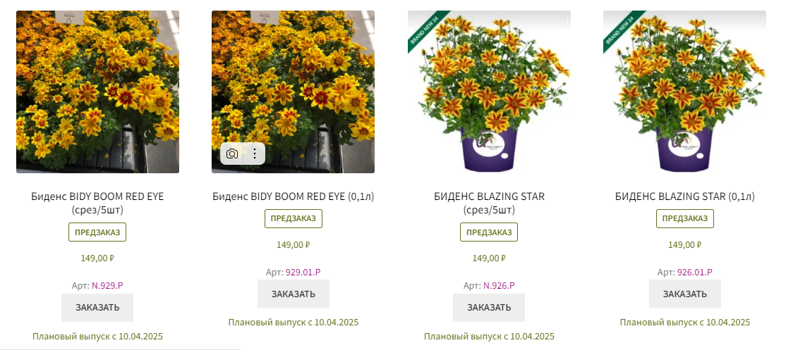 Наталья выращивала биденс из семян, собранных, кажется, у соседки. И соответственно, все, прочитавшие то интервью и заинтересовавшиеся, искали в продаже семена этого цветка. Но не находили. И вот я нашла биденс в нашем питомнике саженцами и черенками.