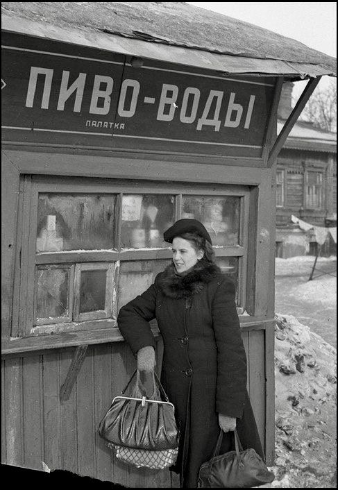 И как я обещал в самом начале первая остановка не заставила нас ждать, вот вам палатка Пиво-Воды, и симпатичная девушка)) Предположительно это 1950-е годы, возможно ранее. А вы как думаете? А пока вы думаете, мы отправляемся дальше))