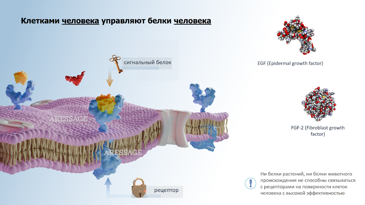 Сигнальные полипептиды (факторы роста и цитокины) играют ключевую роль в клеточной коммуникации и регуляции различных физиологических процессов в организме человека. Они представляют собой трехмерные глобулы, состоящие из цепочек аминокислот. Взаимодействие сигнальных полипептидов человека с рецепторами на поверхности клеток человека является основным механизмом, который управляет многими жизненно важными процессами в организме, обеспечивая координацию и интеграцию клеточных функций в ответ на различные внутренние и внешние события. 🟢Как это происходит? Когда сигнальный полипептид синтезируется одной клеткой, он может свободно диффундировать (переместиться) в межклеточное пространство и связываться с специфическими рецепторами, расположенными на мембране другой целевой клетки. Рецепторы представляют собой белковые молекулы, которые обладают определенной конформацией (формой), позволяющей им взаимодействовать только с конкретными сигнальными молекулами. Это взаимодействие может нормали