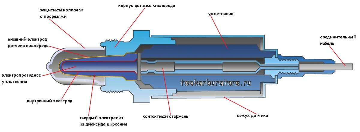 Датчик кислорода работает только в прогретом как минимум до 300 градусов состоянии. Для вывода датчика на рабочий режим в нем установлен нагревательный элемент.