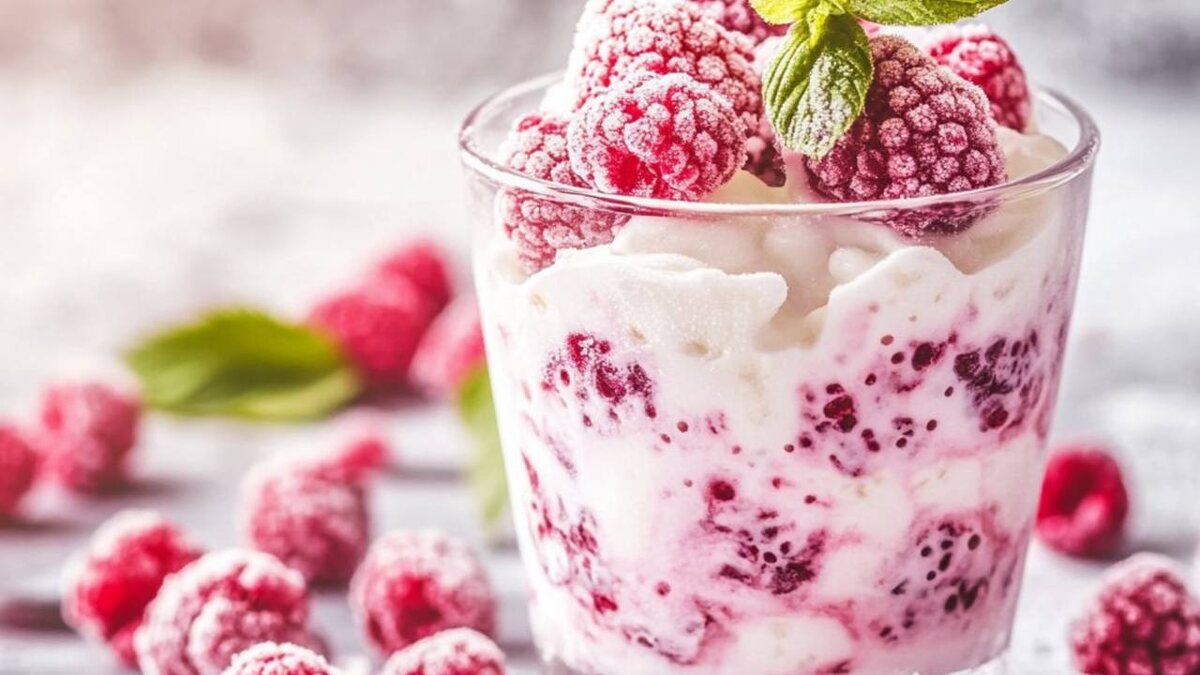 - Йогурт (150 г) - Ягоды, например клюква или замороженные (50 г) – у меня замороженная малина.
