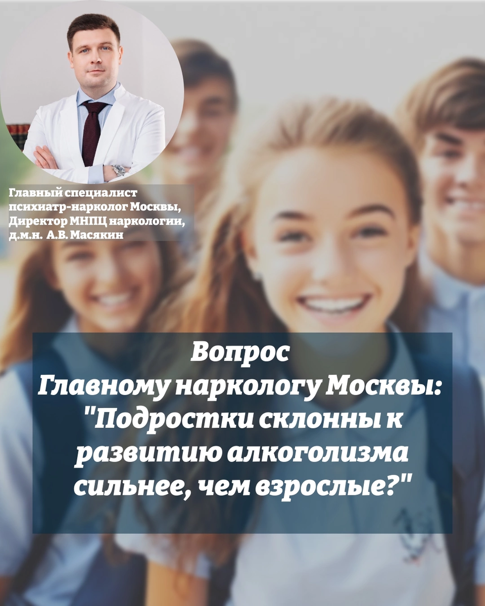 «Подросток начал первые пробы алкоголя в компании…очень переживаю, скажите, дети склонны к развитию алкоголизма сильнее, чем взрослые?». Рубрика «Вопрос Главному наркологу Москвы». - Да, из-за скорости обменных процессов в организме растущего человека, этанол быстрее и сильнее, чем во взрослом организме, нарушает процессы роста, развития, адаптации к изменяющейся среде. Подростковый возраст наиболее уязвимый к негативным воздействия внешней среды, подверженный стрессовым и конфликтным ситуациям. Для подростка алкоголь может становиться средством компенсации, облегчающим процесс адаптации в социуме, даже таким деструктивным способом. У подростков, употребляющих алкоголь, психические нарушения могут ускорить формирование зависимости. Физиологические особенности возрастных кризов пубертатного периода являются своеобразной благоприятной почвой, на которой алкоголь может дать быстрое развитие болезни. Считается, что алкоголизм чаще развивается у подростков в тех случаях, когда их лично