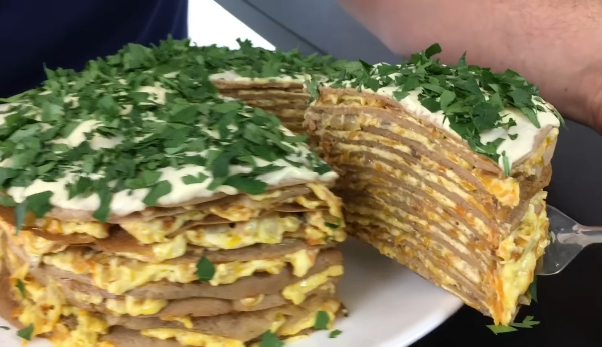 - Печень куриная - 500 г - Яйца - 3 шт. - Лук - 2 шт. - Чеснок - 3 зубчика (по вкусу) - Мука - 2-3 ст. ложки - Соль - по вкусу - Перец - по вкусу - Масло растительное - 30 мл - Майонез - 150 г (по вкусу) Торт из печени - моя любимая закуска. Не обязательно ждать праздников чтобы приготовить эту вкуснятину) 1. Очищаем и нарезаем лук: Очистить оба лука, затем один мелко нарезать, а второй разделить на четыре части. 2. Промыть куриную печень и обсушить её. 3. Разогреваем сковороду и добавляем растительное масло. Выложить нарезанный лук в разогретое масло и обжаривать до золотистого цвета на среднем огне, периодически помешивая. После обжарки дать луку остыть. 4. Пропустить через мясорубку куриную печень, сырой лук и половину жареного лука. 5. Добавляем соль и перец по вкусу, после чего взбиваем три яйца и тщательно перемешиваем. 6. Добавить две столовые ложки муки и снова хорошо перемешать тесто для блинов. Выпекание блинов 🌯 7. Разогрейте сковороду, слегка смажьте её растительн