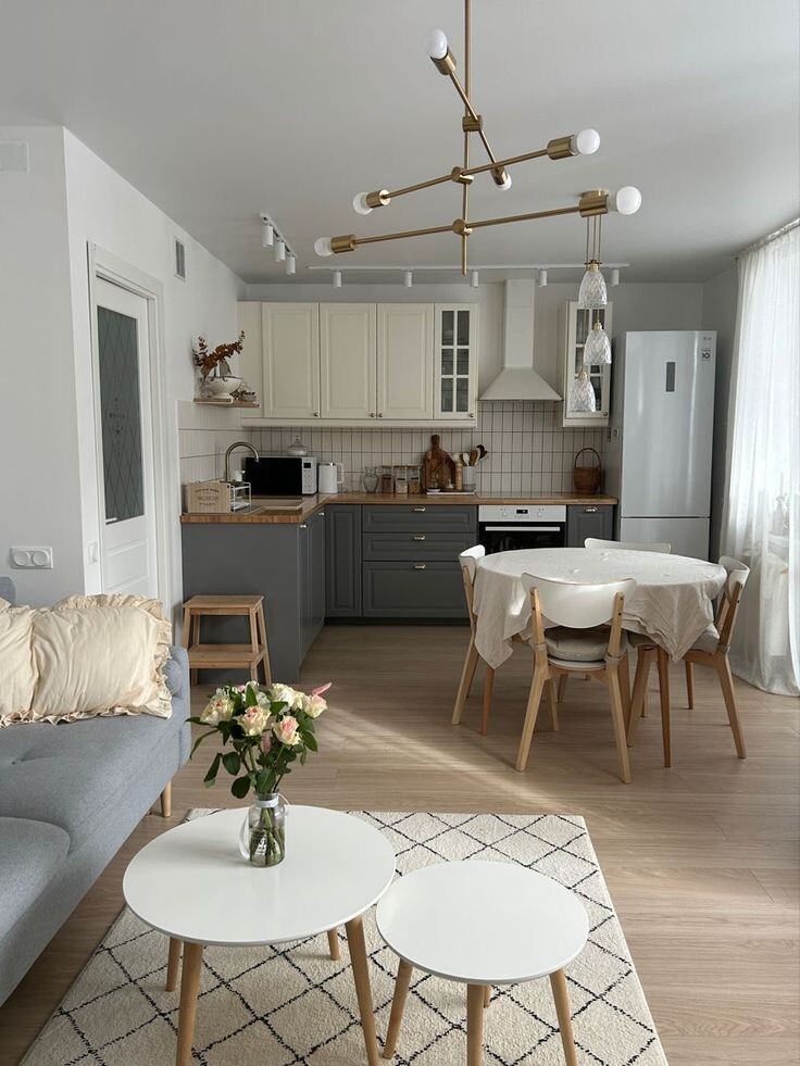В маленьких квартирах важно быть гибким в планировке. Например, в кухнях-студиях можно использовать многофункциональную мебель, которая легко трансформируется. Диван, который превращается в кровать, стол, который можно сложить, когда он не нужен, — все это помогает адаптировать пространство под различные нужды.