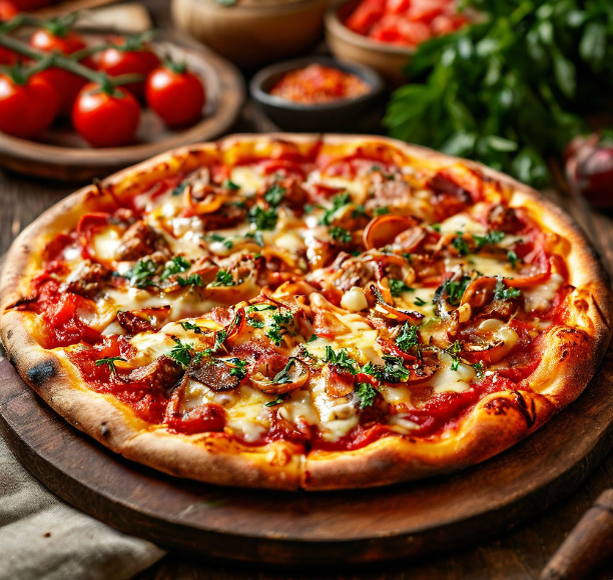 *колбаса, ветчина, грибы, оливки, помидоры, болгарский перец — на ваш вкус. Приготовление: 2 .Куриные наггетсы.