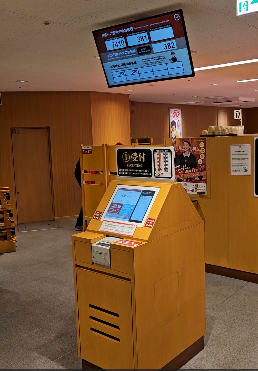 Очередь электронная. Берём талончик с номером и указываем, на сколько человек нам столик нужен.