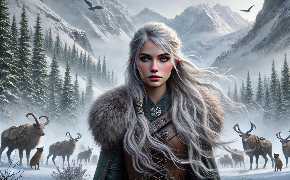 Руна всегда была иной. Родившаяся в заснеженных предгорьях Северного Предела, она росла среди суровых ветров и звенящей тишины горных долин. Её шаги были лёгкими, а взгляд — внимательным, а за синевой юных глаз скрывалась странная загадочная сила, не объяснимая словами но ощутимая каждым. О ней говорили по-разному. Кто-то видел в ней просто упрямую девчонку, не знающую своего места, другие — будущую легенду клана. Старики замечали в ней что-то особенное, что-то, что выходило за рамки привычного уклада жизни. Уже с детства она отличалась от сверстников. Ночами Руна вставала с постели и ходила по деревне, словно ведомая невидимой силой. Во сне она произносила слова на странных, неведомых языках, которых никто не знал. Когда Руна подросла, её связь с миром вокруг стала проявляться ещё сильнее. Дикие косули не сторонились её кормясь с её руки. Волки не пытались напасть — казалось, они видели в ней что-то большее, чем человека. Даже медведи уходили в сторону, с её тропы стоило ей лишь приказать, а хищные птицы кружили в небе, будто следили за каждым её движениями. Со временем она поняла, что может смотреть их глазами — видеть сквозь них, ощущать мир так, как его чувствовали звери. Это было знание, не похожее ни на одно другое, дар, который не поддавался объяснению. С четырнадцати лет Руна всё чаще убегала в предгорные леса. Она уходила вглубь чащи, в места, куда никто из её соплеменников не смел забредать в одиночку. Она оставалась там днями, но всегда возвращалась невредимой, будто лес сам защищал её, пряча от всех угроз. Никто не знал, чем она занималась в этих походах, но всё это лишь укрепляло веру людей что эта девочка особенная. Поговаривали даже что она само воплощение богини Сейдар решившей явиться своему народу во плоти. Впрочем, старейшины, наблюдая за ней, не спешили делать выводы. Они знали, что судьба порой укладывает нити в узоры, которые не сразу можно разглядеть. Вопрос был лишь в том, к чему приведёт этот путь. Будет ли он тропой славы или дорогой, полной потерь?