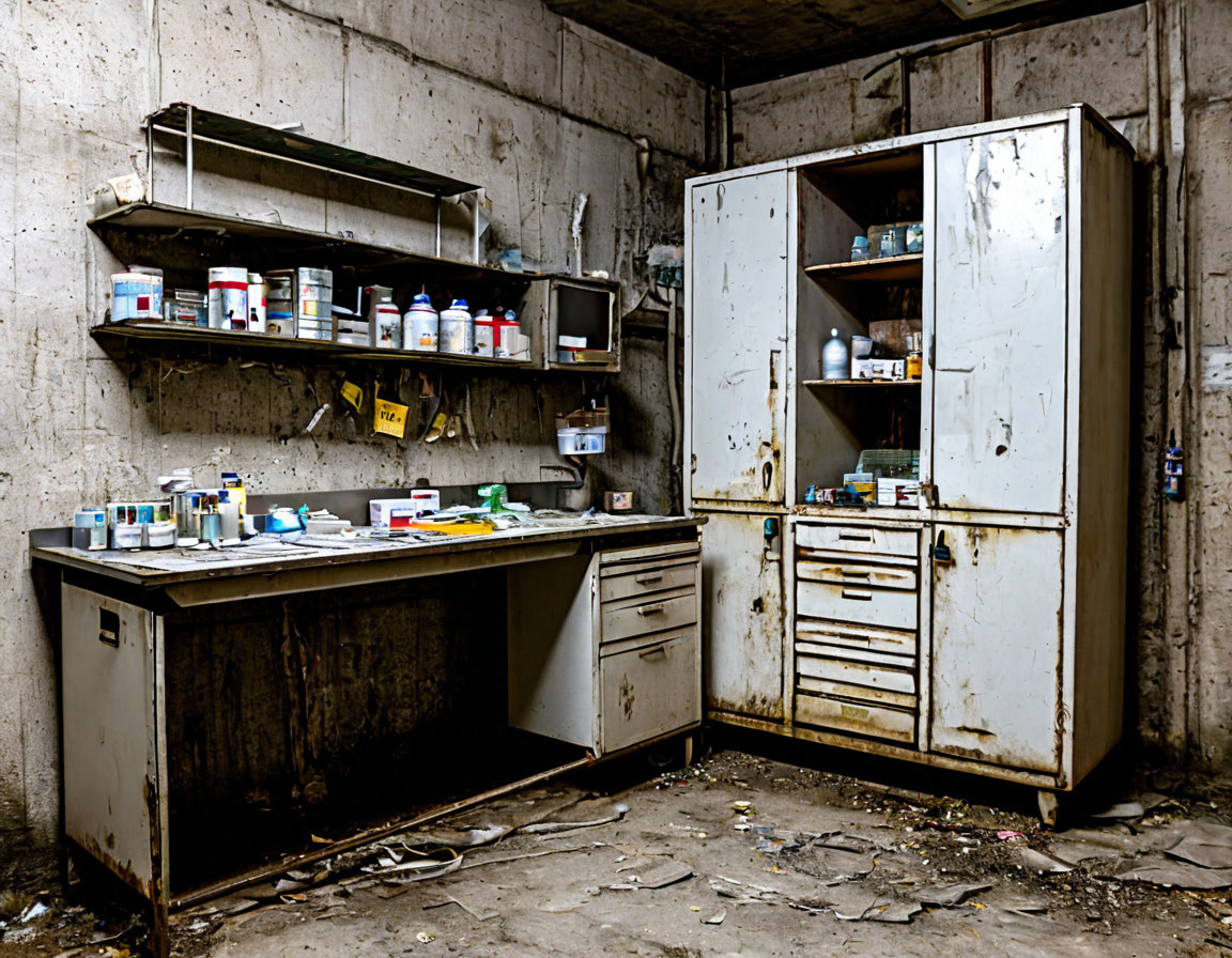 В конце комнаты стоял большой советский холодильник, покрытый толстым слоем пыли, которая делала его похожим на старый сундук с сокровищами. Рядом с ним находилась электрическая плита, на которой когда-то готовили еду для обитателей бункера. В углу комнаты стояла раковина, над которой висело зеркало, теперь покрытое паутиной и табличка напоминающая о важности помыть руки перед едой.