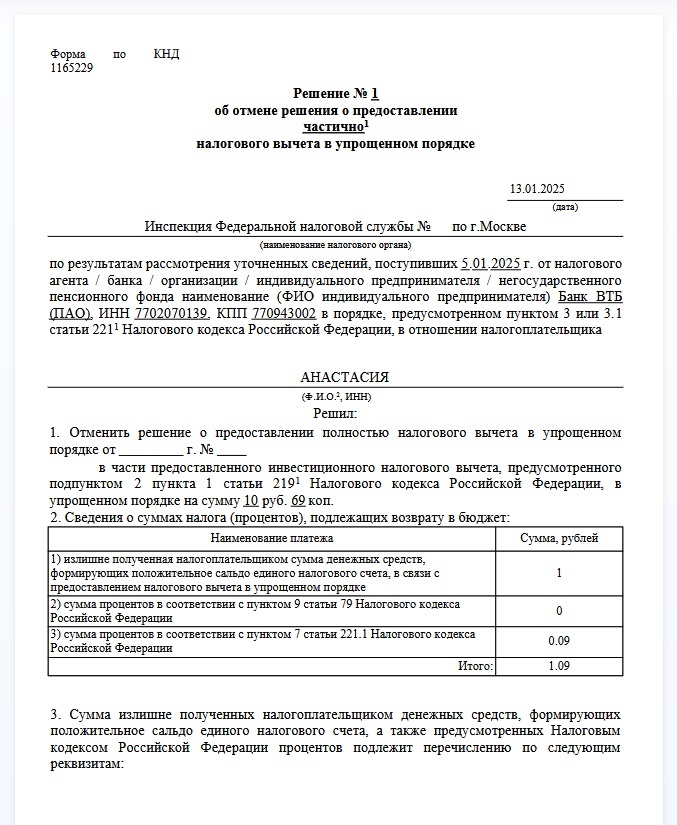 На днях у меня начался собираться комплект документов для подачи налоговой декларации за 2024 год и я решила этим заняться. Захожу я значит в личный кабинет, а там висит долг. Я сначала решила, что это Альфа подала сведения, что не удержала налог по доходам с ЦФА, но слава Богу я зашла в начисление и увидела, что ВТБ, брокер у которого открыт мой ИИС подал какие-то уточненные сведения в ФНС за 2023 год по упрощенному вычету, полученному мной в 2024 году. Зачем он это сделал не ясно, я его об этом не просила. Да и я в этом году не планировала оформлять упрощенный вычет потому, что налоговая не знает о моих доходах, облагающихся НДФЛ и не узнает, пока я сама не настучу на себя.