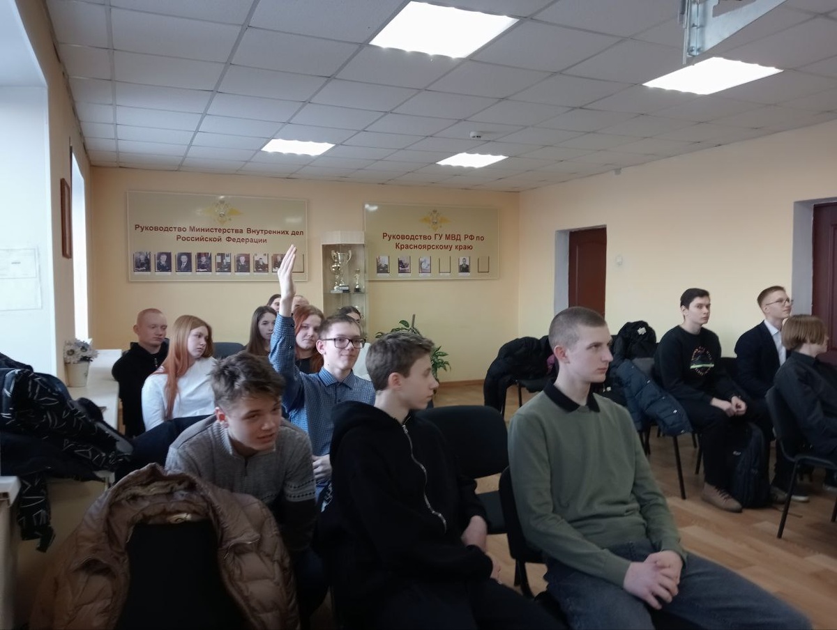 В Отделе МВД России по Богучанскому району состоялось мероприятие, организованное для старшеклассников богучанских школ. В первую очередь, в нем приняли участие ребята, у которых в планах связать свою будущую профессиональную деятельность со службой в органах внутренних дел. Своим богатым опытом службы поделился с молодежью ветеран МВД Федор Димчев, рассказав о мотивах выбора профессии и пройденном пути. Федор Федорович подробно остановился на отличиях между милицией и полицией, подчеркнув важность обеспечения общественного порядка как основного принципа их деятельности. В ходе беседы у молодежи появились вопросы, что свидетельствовало о живом интересе к теме. В заключение своего выступления ветеран МВД напутствовал будущих полицейских: «Самое главное в любой ситуации оставаться человеком и верить в добро». Начальник Отдела подполковник Максим Соколов подчеркнул, что полицейские, как мужчины, так и женщины, несут важную службу государству, закону и обществу. Для школьников руководитель