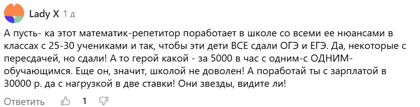 Забавно, конечно, но, к счастью, я точно знаю, что и среди немолодых учителей есть люди, которые гораздо адекватнее смотрят на учительское "служение" и не видят ничего зазорного в том, чтобы зарабатывать своим трудом и опытом.