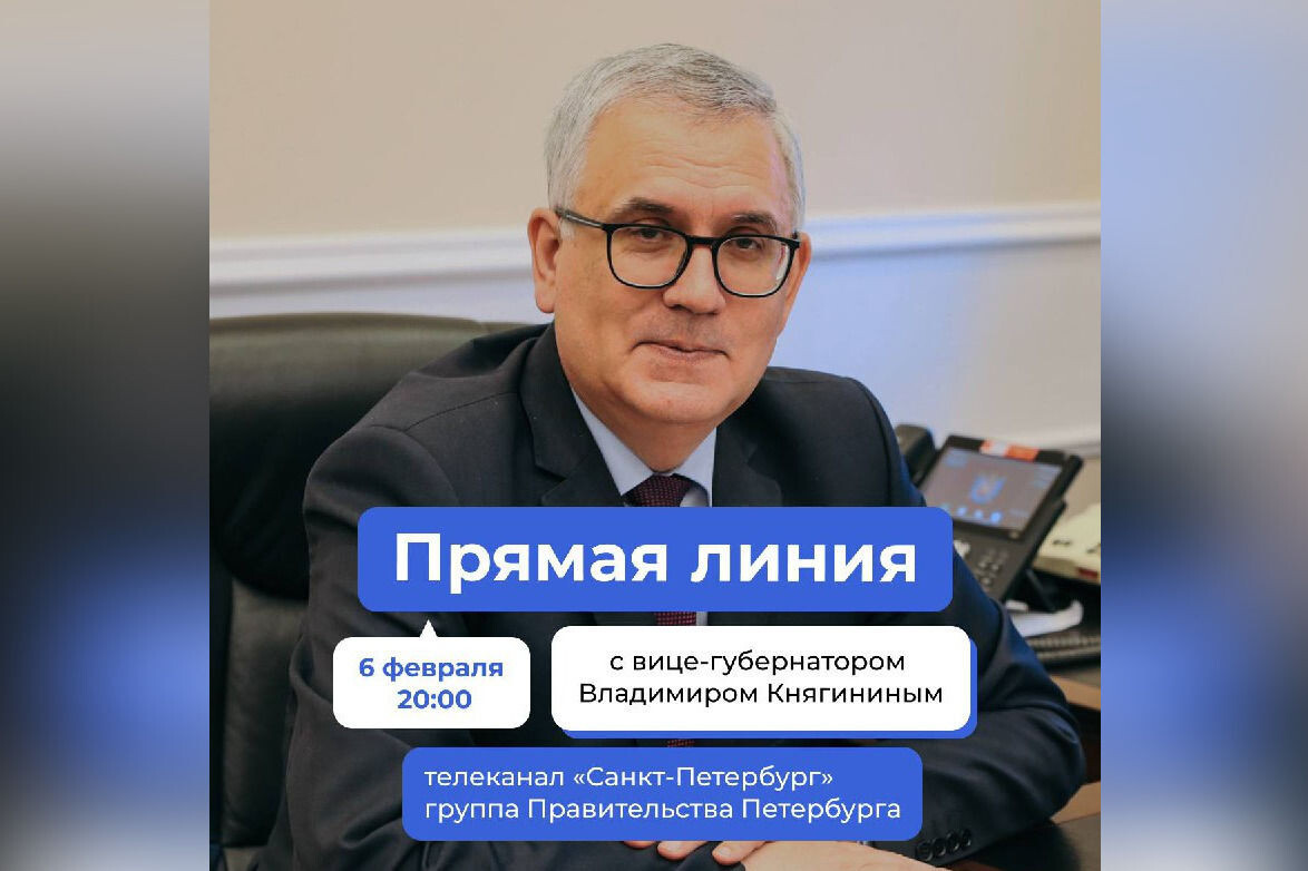 В этот четверг, 6 февраля, состоится прямая линия с вице-губернатором Санкт-Петербурга Владимиром Княгининым, курирующим работу комитетов по науке и высшей школе; по труду и занятости населения; по делам Арктики. Задать интересующие вопросы можно на личной странице вице-губернатора во «ВКонтакте» или по телефону горячей линии: 246-79-49. Прямая линия начнется в 20:00 в эфире телеканала «Санкт-Петербург», трансляция будет доступна в группе правительства города. Напомним, ранее мы писали, что Александр Беглов рассказал о реализации мегапроектов Санкт-Петербурга. Подробнее читайте здесь.