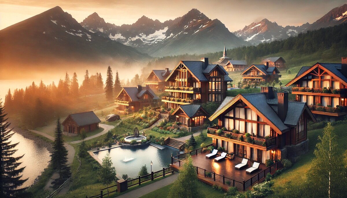 - Особенности: альпийский стиль, спа-комплекс, близость к природным достопримечательностям.