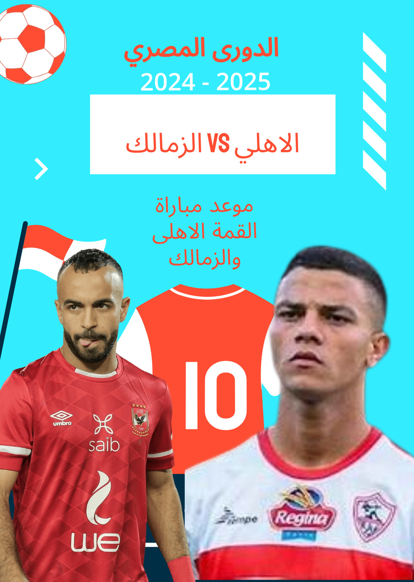 موعد مباراة الاهلى والزمالك القادمة والقنوات الناقلة بسم الله الرحمن الرحيم والصلاة والسلام على سيدنا محمد ( صلى الله عليه وسلم ) السلام عليكم ورحمة الله وبركاته مباراة الأهلي والزمالك، أو كما يحلو للبعض تسميتها "ديربي القاهرة"، هي أكثر من مجرد مباراة كرة قدم. إنها حدث تاريخي، ثقافي، ورياضي، يحمل في طياته شغف الملايين من عشاق كرة القدم في مصر والعالم العربي. إنها قمة كروية بين عملاقين من أندية القارة الأفريقية، الأهلي نادي القرن والزمالك فارس ميت عقبة، تاريخ عريق من البطولات والانجازات محفور في قلوب الجماهير.