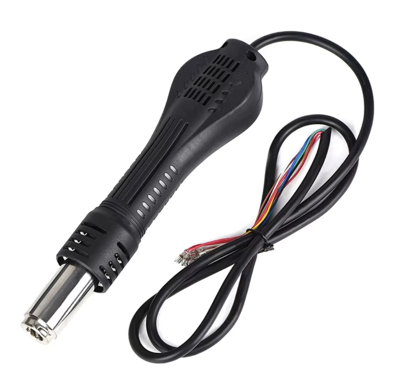 был куплен очень давно, но пока прикидывал что и как сделать, была куплена паяльная станция и фен отправился в запасники, на случай если потребуется замена. Замена всё не требовалась, а т.к. ремонт электроники не является средством заработка, то и специализированного стола на котором бы постоянно находилась станция просто нет. Она лежит в коробке на полке и извлекается по мере надобности. Но доставать её чтоб нагреть пару термоусадочных трубок стало надоедать. В общем размещенная здесь статья сработала как спусковой крючок. Фен был найден, фен был разобран, идея была собрать устройство чтоб оно не имело отдельных блоков и сетевой провод был отсоединяемым (не люблю приборы с висячими хвостами). Началась разработка и тестирование идей. Часть корпуса от старого фена решил оставить, пластик из которого он сделан более термостойкий. Отпилив лишнее и создав модель оставленного фрагмента фена, стал разрабатывать новый корпус.