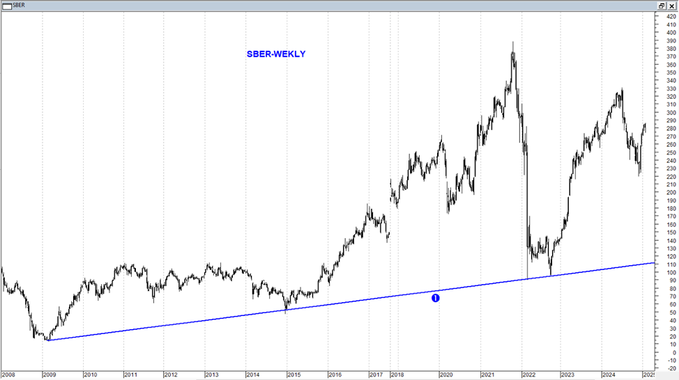 Рис.1 ( Сбербанк, еженедельный график)