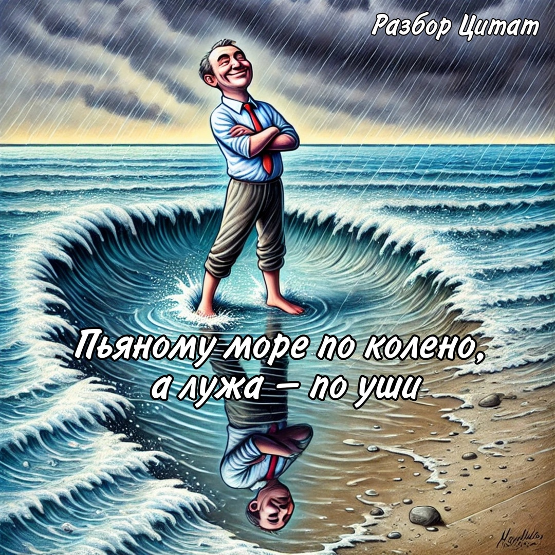 Пословица: 📜 «Пьяному море по колено, а лужа — по уши» 🌊✨