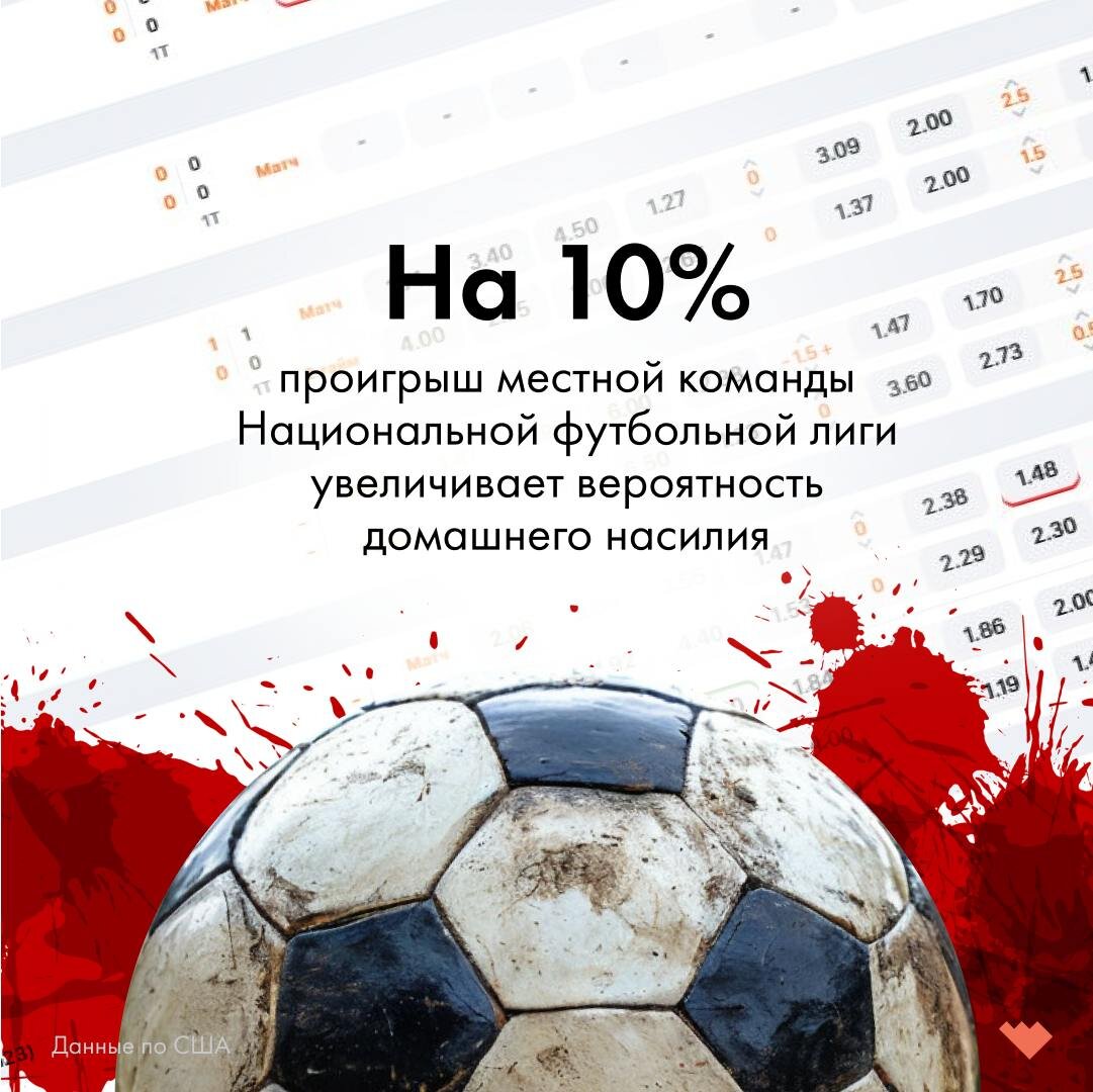 Оказалось, что если в штате легализованы ставки на спорт, то проигрыш домашней команды Национальной футбольной лиги увеличивает вероятность насилия со стороны интимного партнера примерно на 10%.