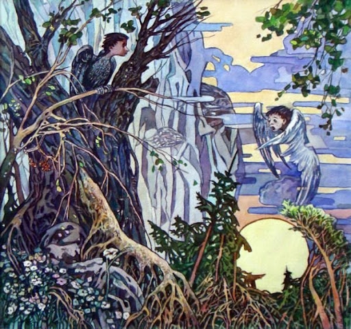 Дальнейший сюжет описывает страдания детей, которые, став птицами, бродят по миру, тоскуя по дому и друг другу. Они слышат лишь свои имена, произносимые ветром: «Сак» и «Сок». Мать, осознав свою ошибку, горько сожалеет о проклятии, но изменить ничего не может.