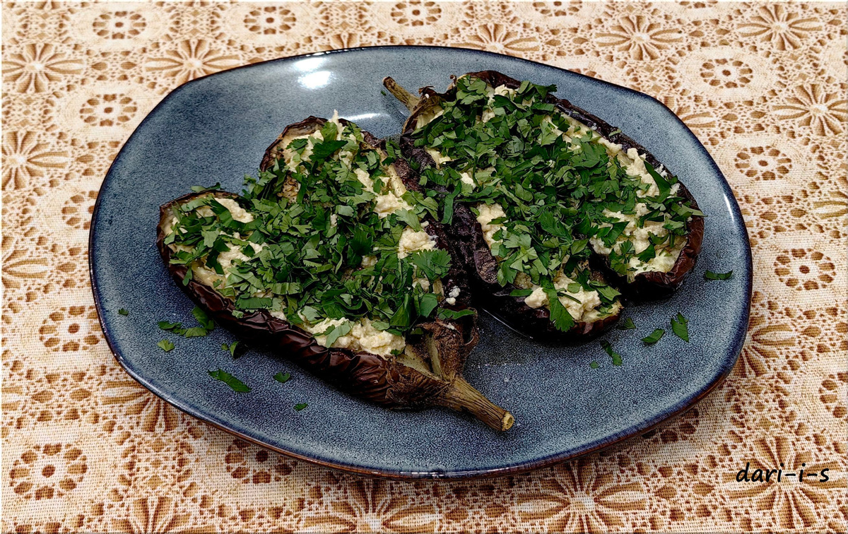 Запечённые баклажаны с кунжутной пастой тахина - вкусная сытная закуска (вариант бабагануш)